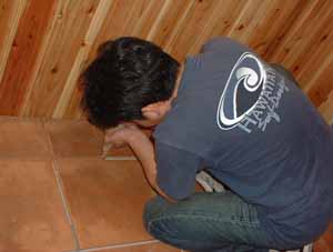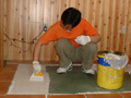 4月28日 店内のタイル貼りはじめる